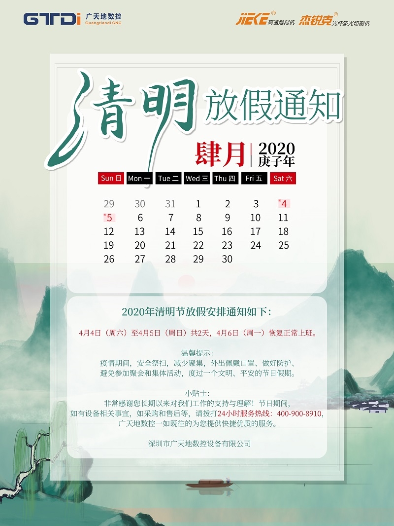 当前位置: 资讯 > 企业新闻 > BG真人数控2020年清明节放假时间安排 < 返回列表