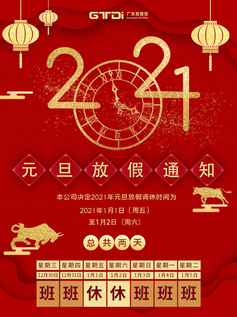 BG真人数控2021年元旦节放假时间安排