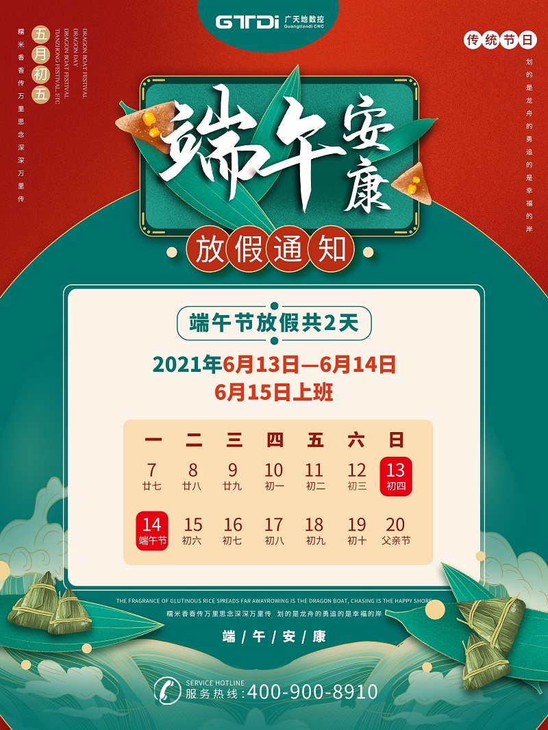 根据国务院办公厅《关于2021年部分节假日安排的通知》,并结合我司实际情况,BG真人数控2021年端午节放假安排如下: