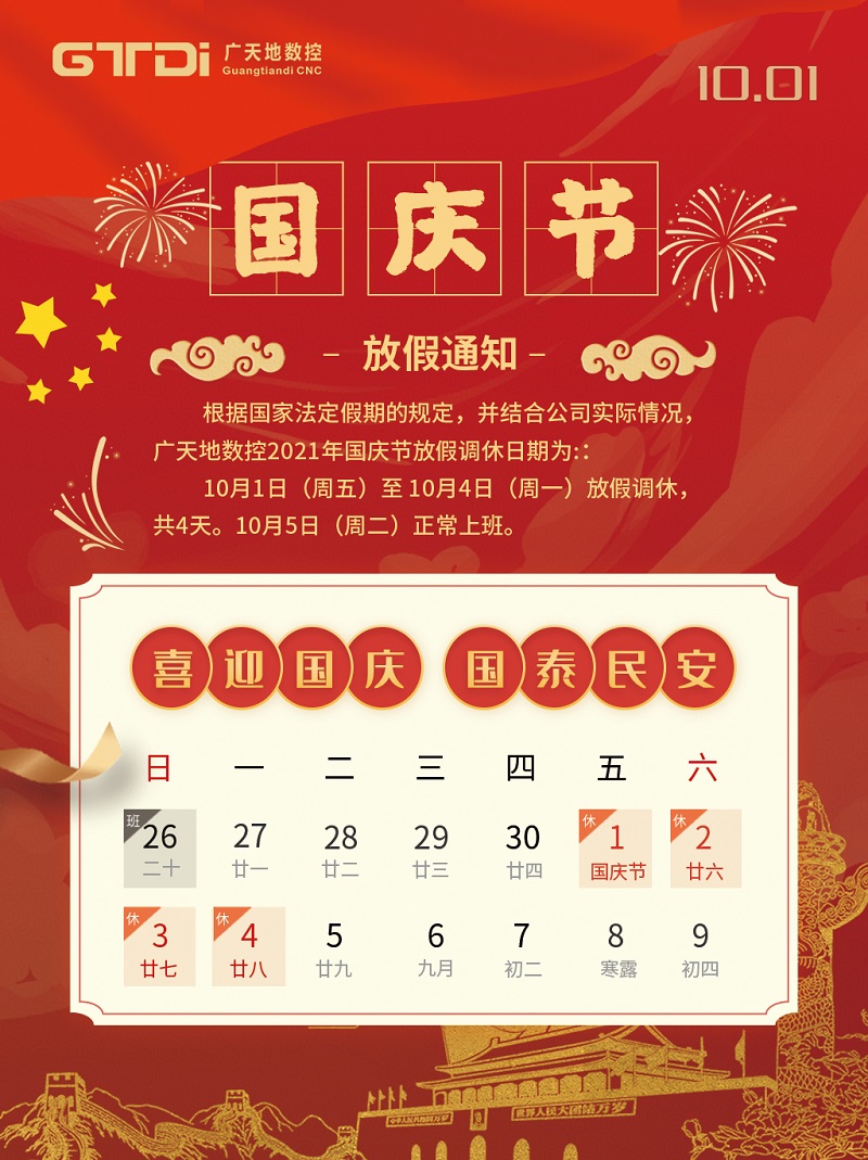 BG真人数控2021年国庆节放假时间安排通知